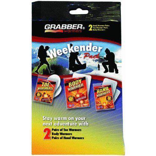 6 pack Grabber warmers weekender pack provides a value pack of our top selling adhesive toe warmers, hand warmers, and adhesive body warmer. This pack is ideal for the weekend warrior or the individual that is on the go and needs to stay warm for the outing.