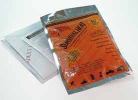 Our Survival Heat Pack? is a large 9" x 13" warmer that comes in its very own reusable bag. This warmer is great for sleeping bags and a "must have" in a vehicle emergency kit. It will last up to 15 hours and can be reused by sealing it back up inside the bag. This restricts the air flow causing it to stop heating. When you need it again, just remove it from the bag, and by allowing air to activate it once again, you can get the full benefit of the 15 hours of heat it can provide. Pack of 4 Warmers. Made in the USA. Item # SHP-4