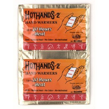 Designed for skiers, hunters, fishermen, golfers, or anyone who works or plays in the cold for long hours, the Heatmax HotHands Hand Warmers are air-activated and will provide up to 8 hours of soothing warmth inside gloves, pockets or wherever you feel a chill. All Heatmax warmers are made of natural materials, including iron powder, water, salt, activated charcoal, and wood fiber. When exposed to air, these materials react together to produce heat through an extremely fast oxidation (or rusting) process. Users should allow 10 to 20 minutes for the warmers to reach their optimal temperatures.