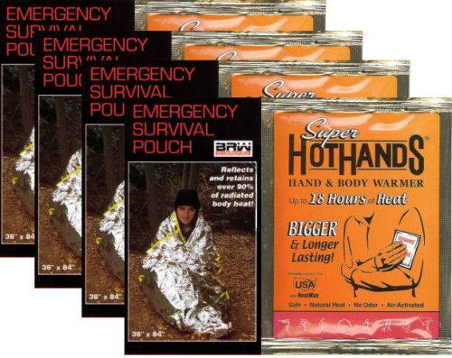 Emergency BRW Made In U.S.A. Survival Sleeping Bags - Pack of 4 Bags PLUS Four HeatMax 18 Hour Body Warmers. Review
